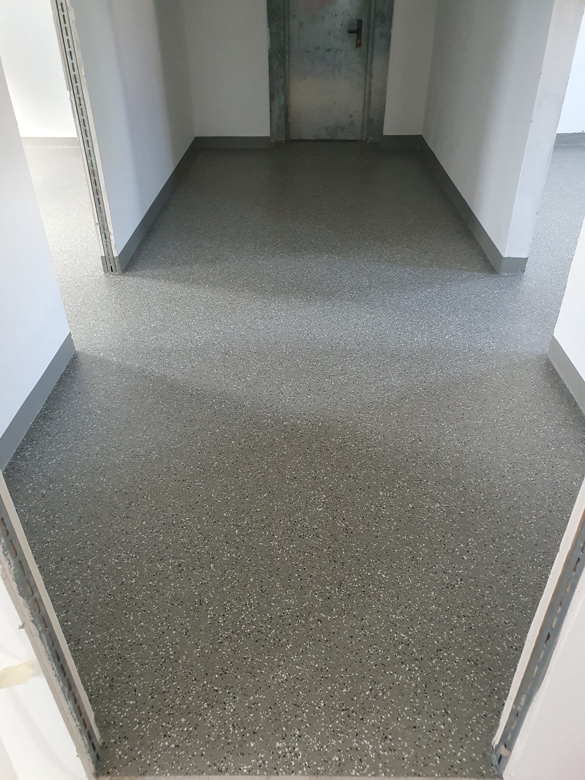 Epoxidharzbodenbeschichtung als Einstreubelag in R12